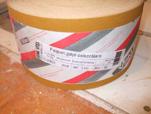 Ez a gépi csiszolószalagot vettem tekercsben, 80-as szemcsenagyság jó durva és finom csiszolásra is. A tekercsen 50 m csiszolószalag van. Ez pár évre elég is lesz nekem. 🙂