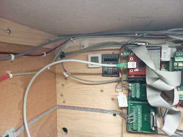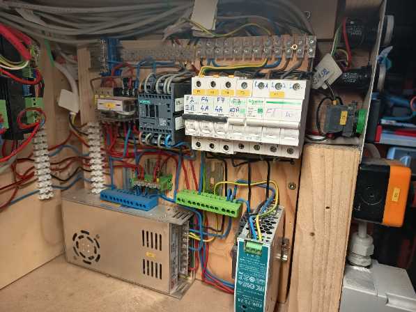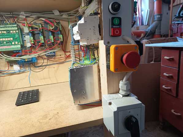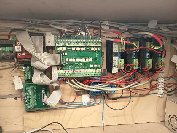 Az új kapcsolásban egy UC300ETH vezérlőkártya egy UCBB kártya és egy IDC16-M pólusú analóg kifejtő modul került bele. Emiatt a táp oldalt is teljesen át kellett építenem. Az IDC16-M kártyához egy kézikerék vezérlő is csatlakozik. Külön kismegszakítókat kapott minden tápegység, vezérlőrelé stb… szóval totálisan át kellett építenem elektromosan a gépet.